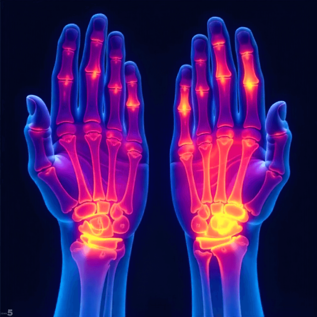 • Fase de la Enfermedad: Fase de Reparación (Vagotonía). La artritis es una inflamación («-itis»), lo que la sitúa en la fase de curación. Durante la fase activa del conflicto de desvalorización y autocrítica, se produciría una necrosis (pérdida de tejido) indolora en el cartílago o hueso de la articulación, que luego se inflama y duele al repararse